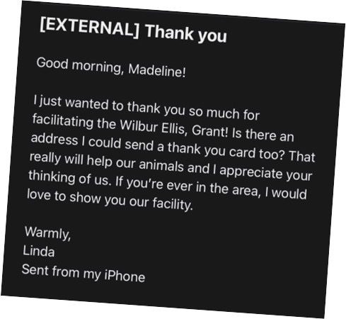 Wilbur-Ellis makes a $1,000 donation to Great Lakes Humane Society in Michigan to help with veterinary and medical costs.